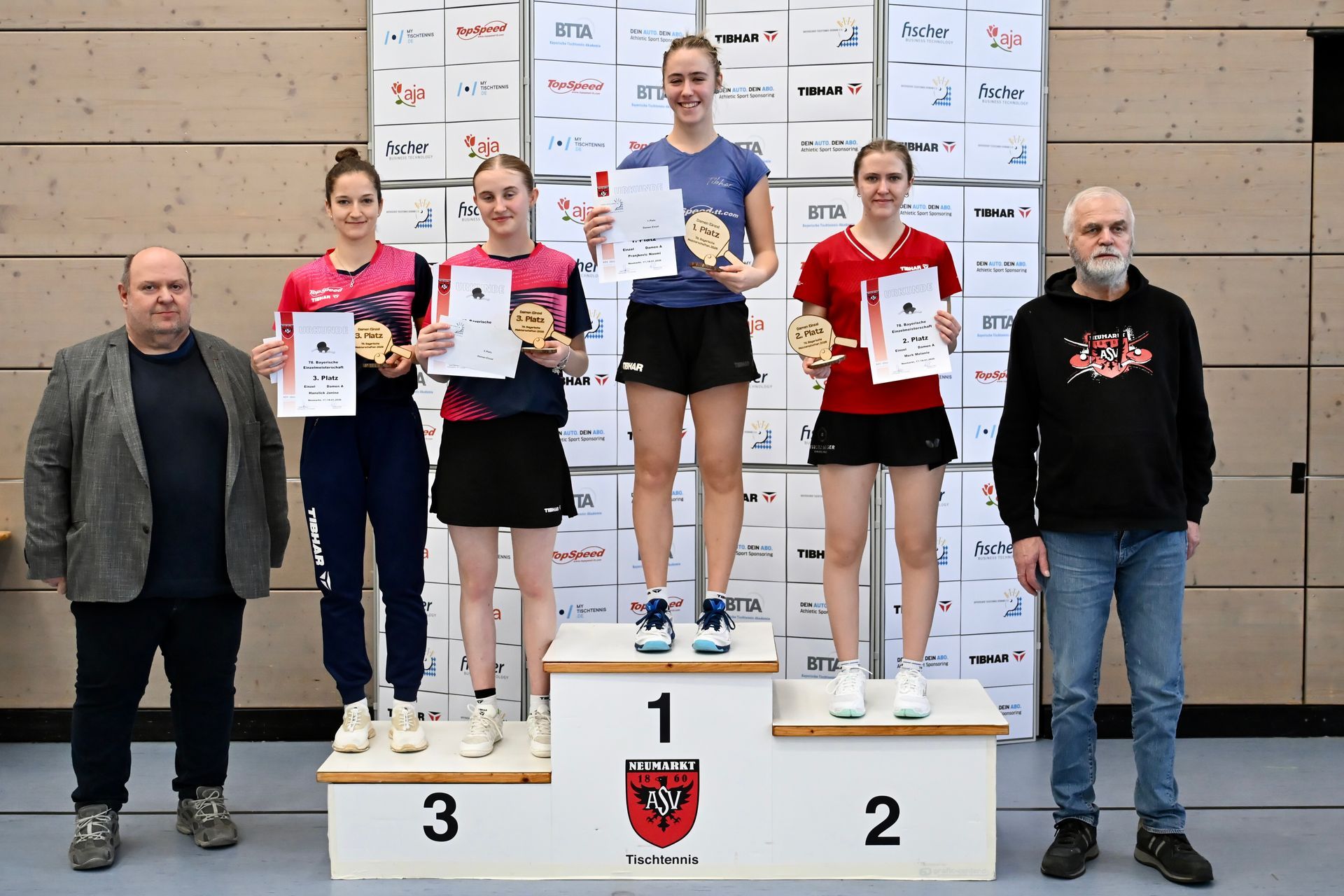 Im Finale musste sich Melanie Merk der Topfavoritin Naomi Pranjkovic, 21jährige Spielerin des Erstligisten Dachau, erwartet 1:4 beugen. Melanie kämpfte tapfer und nahm der Favoritin, die vor zwei Jahren Deutsche Jugendmeisterin war, immerhin einen Satz ab. Im Einzel Kontrahentinnen, wurden Melanie Merk und Naomi Pranjkovic, Tochter von Sylvia Specht (Brajkovic) der Ex-Spielertrainerin Langweids, im Doppel Seite an Seite mit dem Meistertitel ihrer Favoritenrolle gerecht/jug.